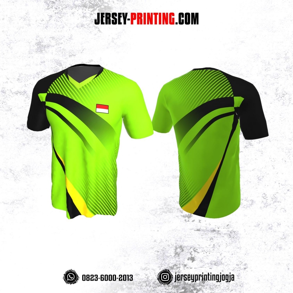 Jersey Badminton Hijau Hitam Kuning Motif Strip