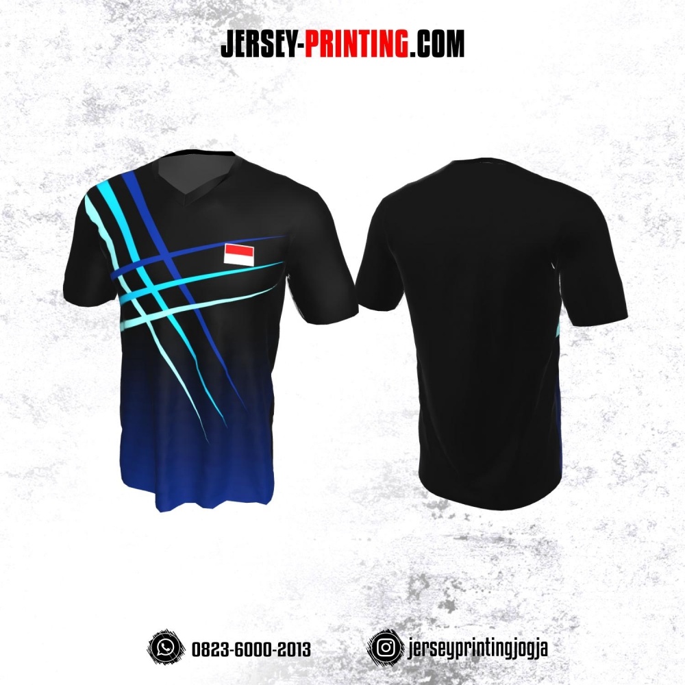 Jersey Badminton Hitam Motif Line Navy Tosca