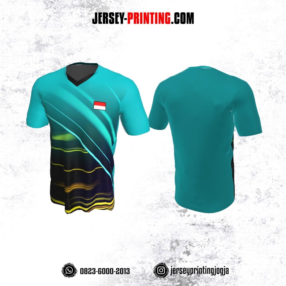 Jersey Badminton Tosca Hitam Motif Line Kuning