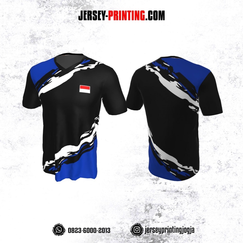 Jersey Badminton Hitam Biru Navy Putih Motif Brush