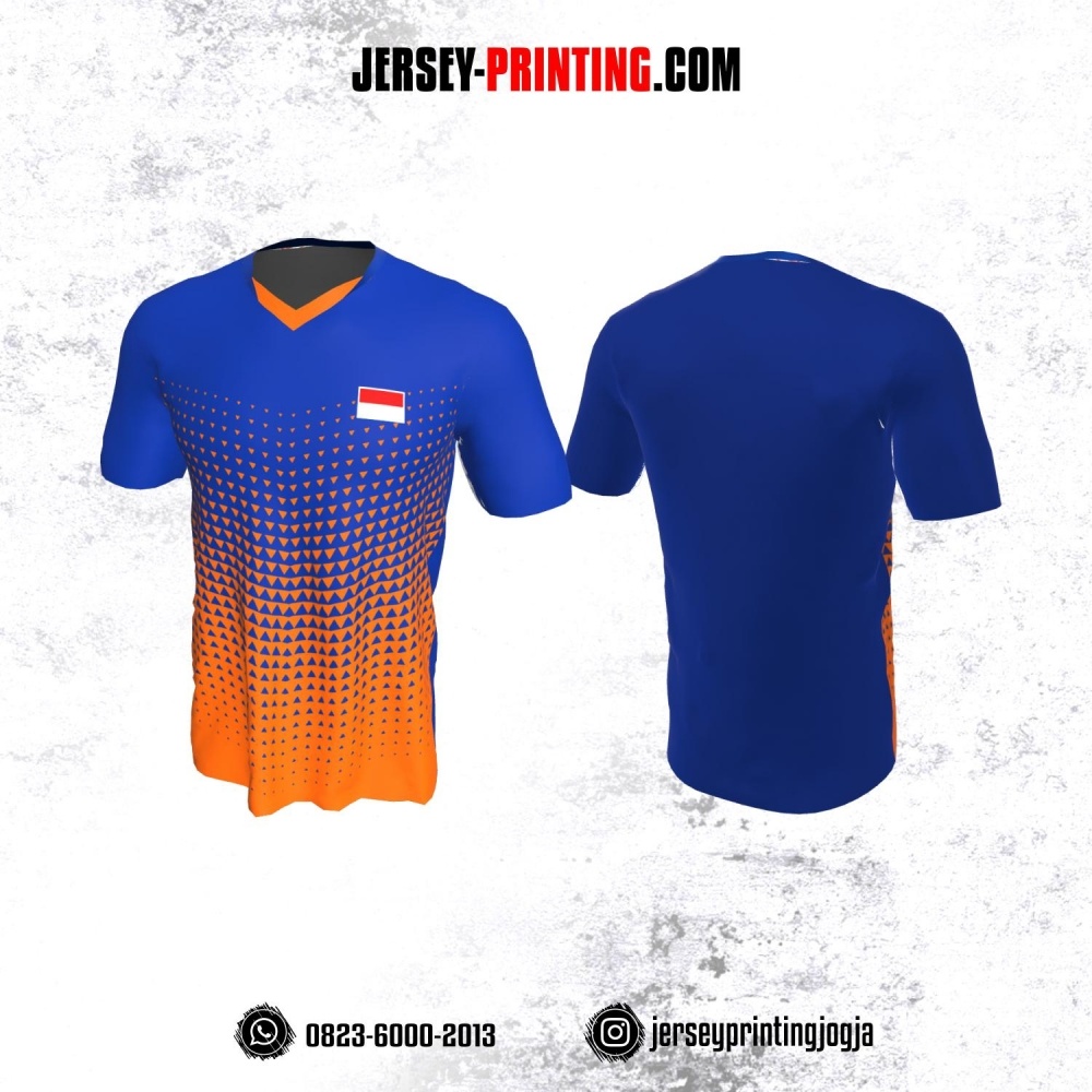 Jersey Badminton Biru Tua Orange Motif Segitiga