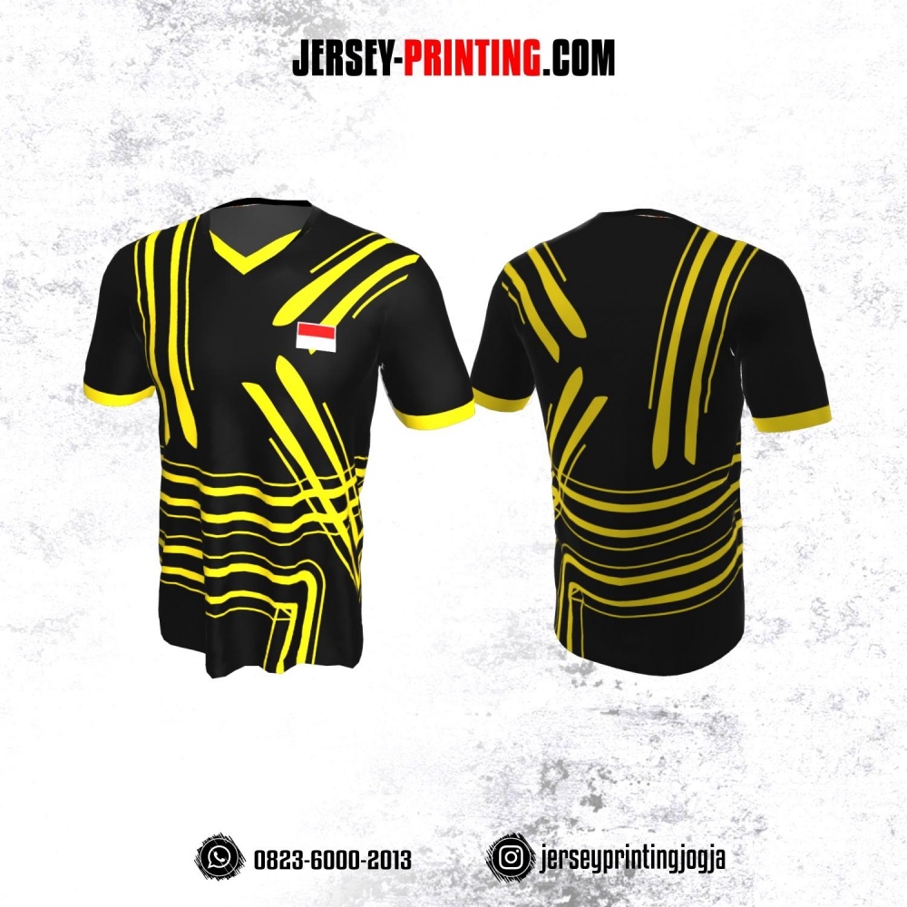 Jersey Badminton Hitam Motif Garis Abstrak Kuning