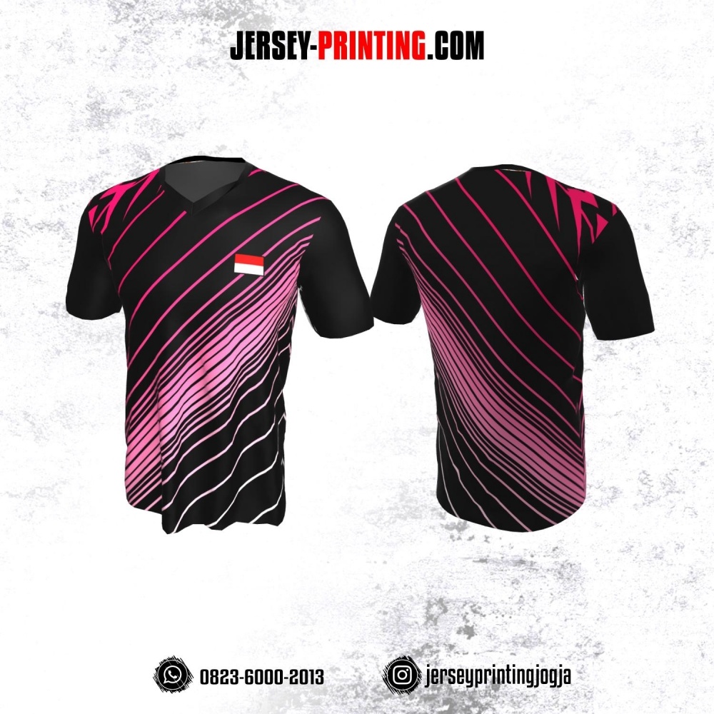 Jersey Badminton Hitam Motif Line Pink