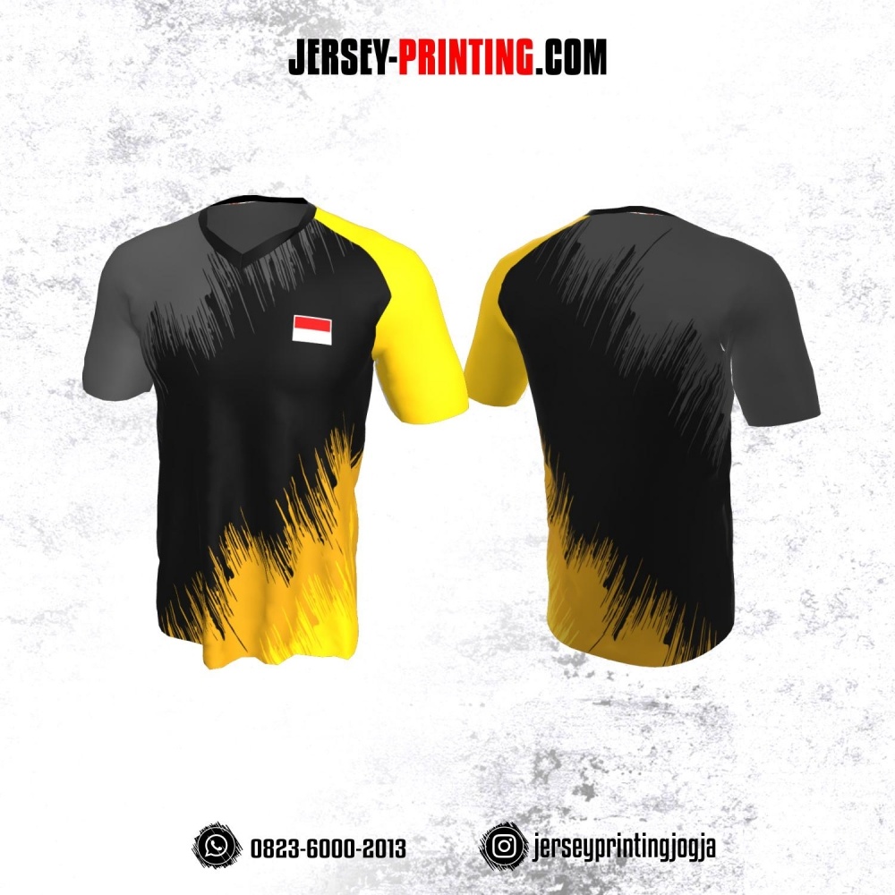 Jersey Badminton Brush Hitam Kuning Abu-abu
