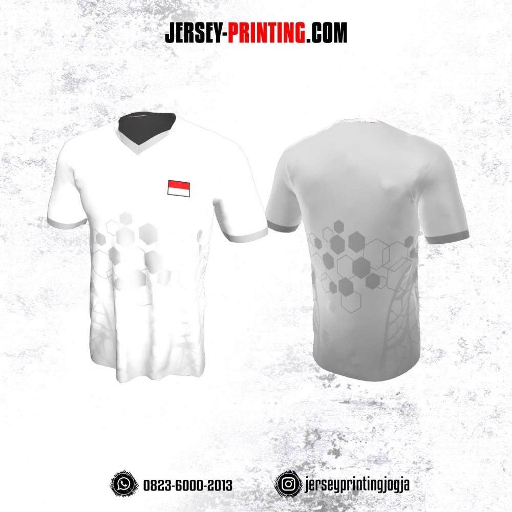 Jersey Badminton Putih Motif Hexagon Abu-abu