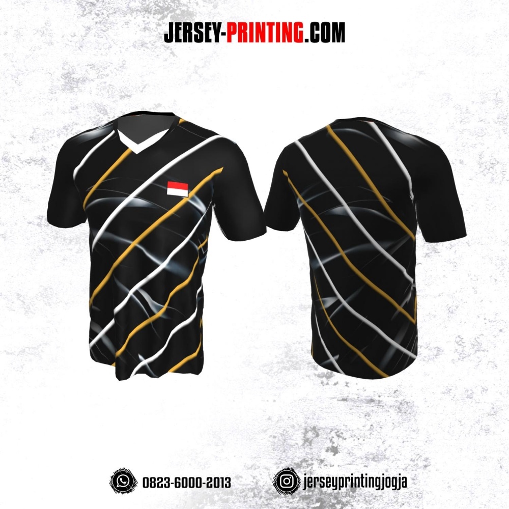 Jersey Badminton Hitam Motif Garis Putih Kuning