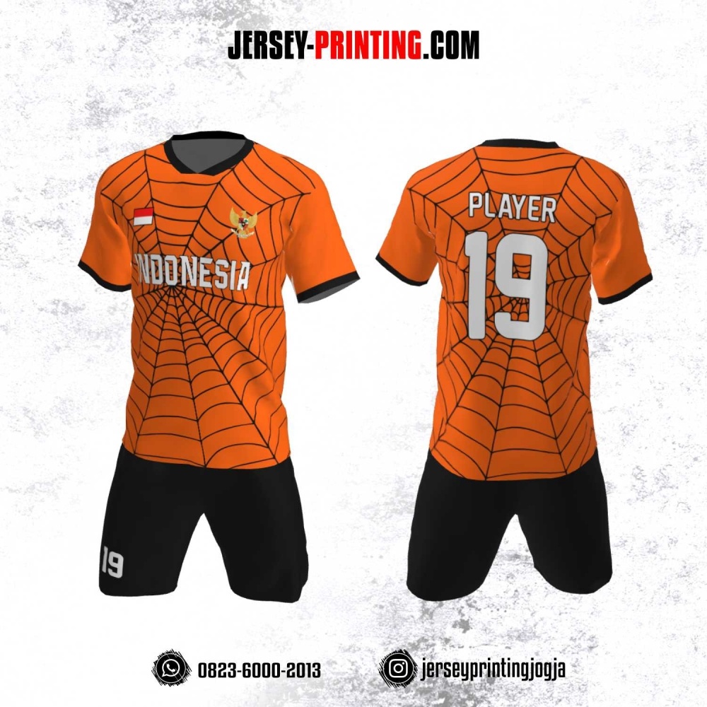 Jersey Futsal Motif Jaring Laba-laba Orange Hitam