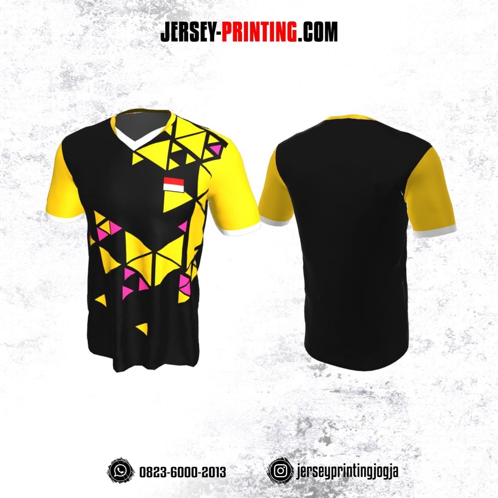 Jersey Badminton Hitam Motif Geometris Kuning Pink