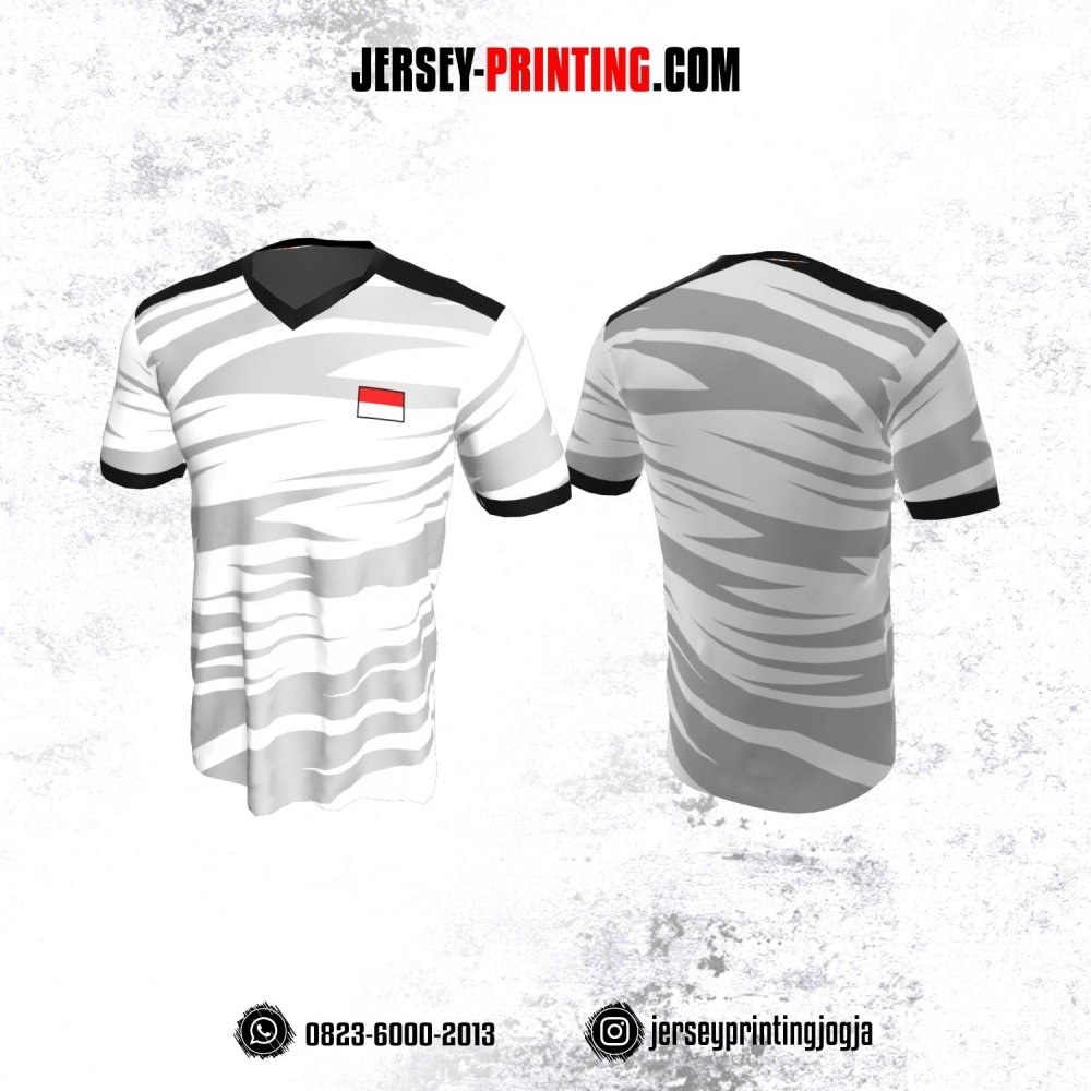 Jersey Badminton Putih Motif Loreng Abu-abu