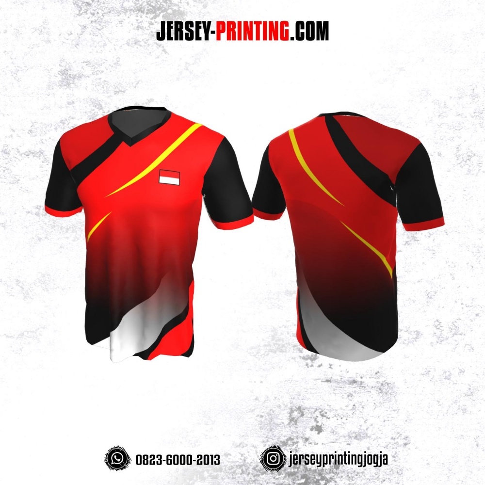 Jersey Badminton Merah Hitam Putih Motif Line Kuning