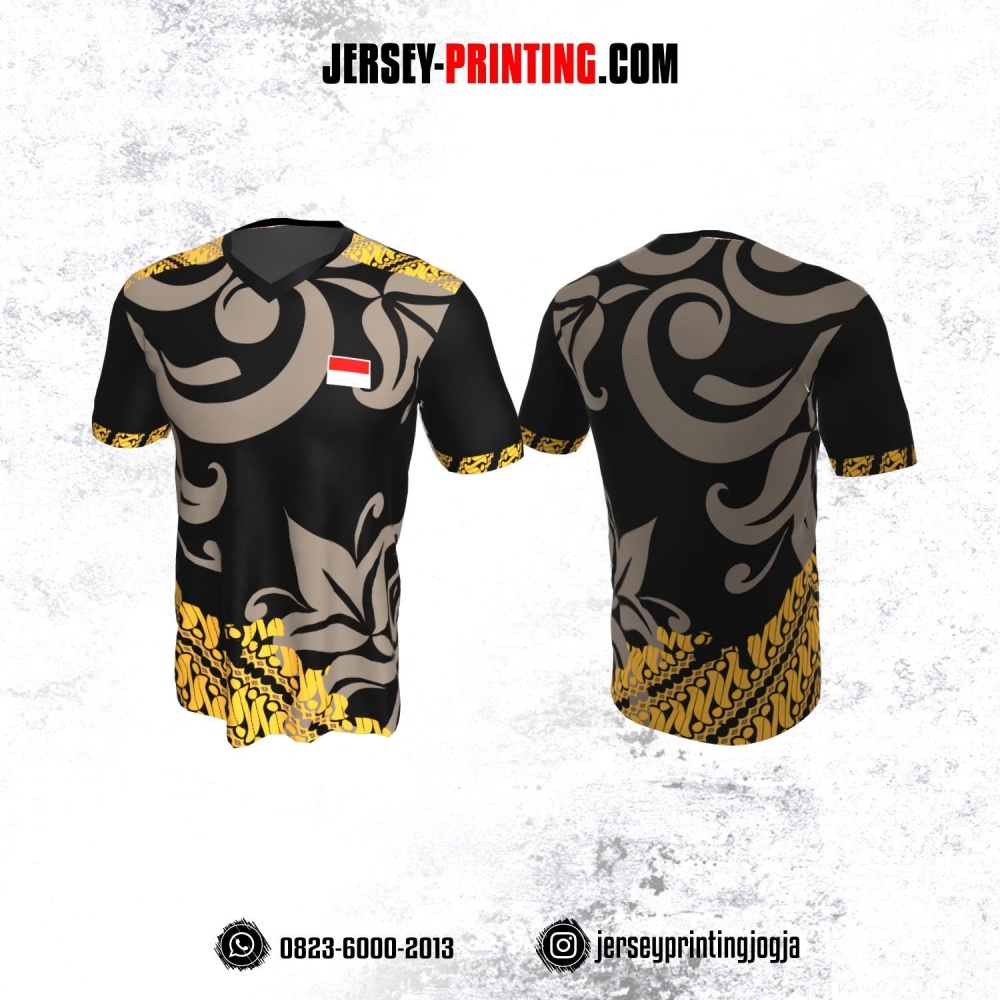 Jersey Badminton Hitam Motif Batik Krem Kuning