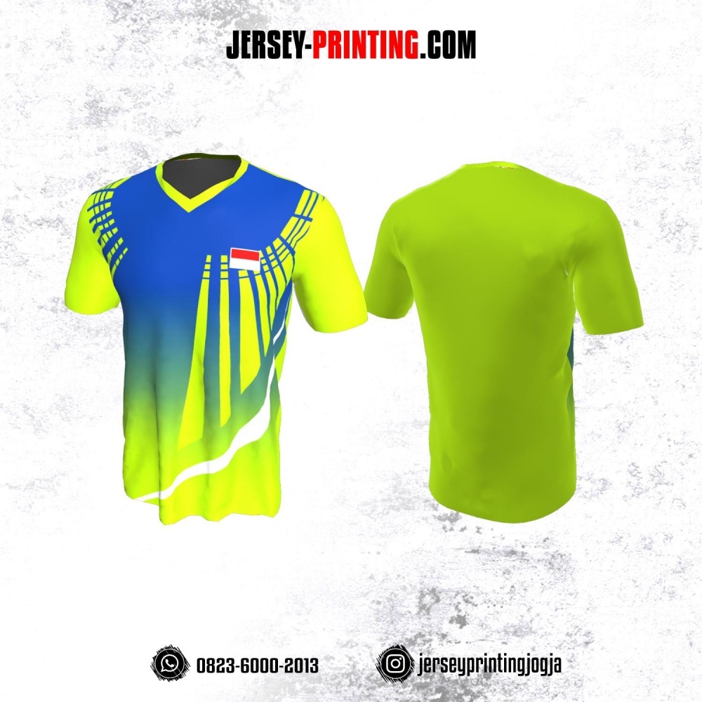 Jersey Badminton Hijau Citroen Corak Biru Putih Motif Garis