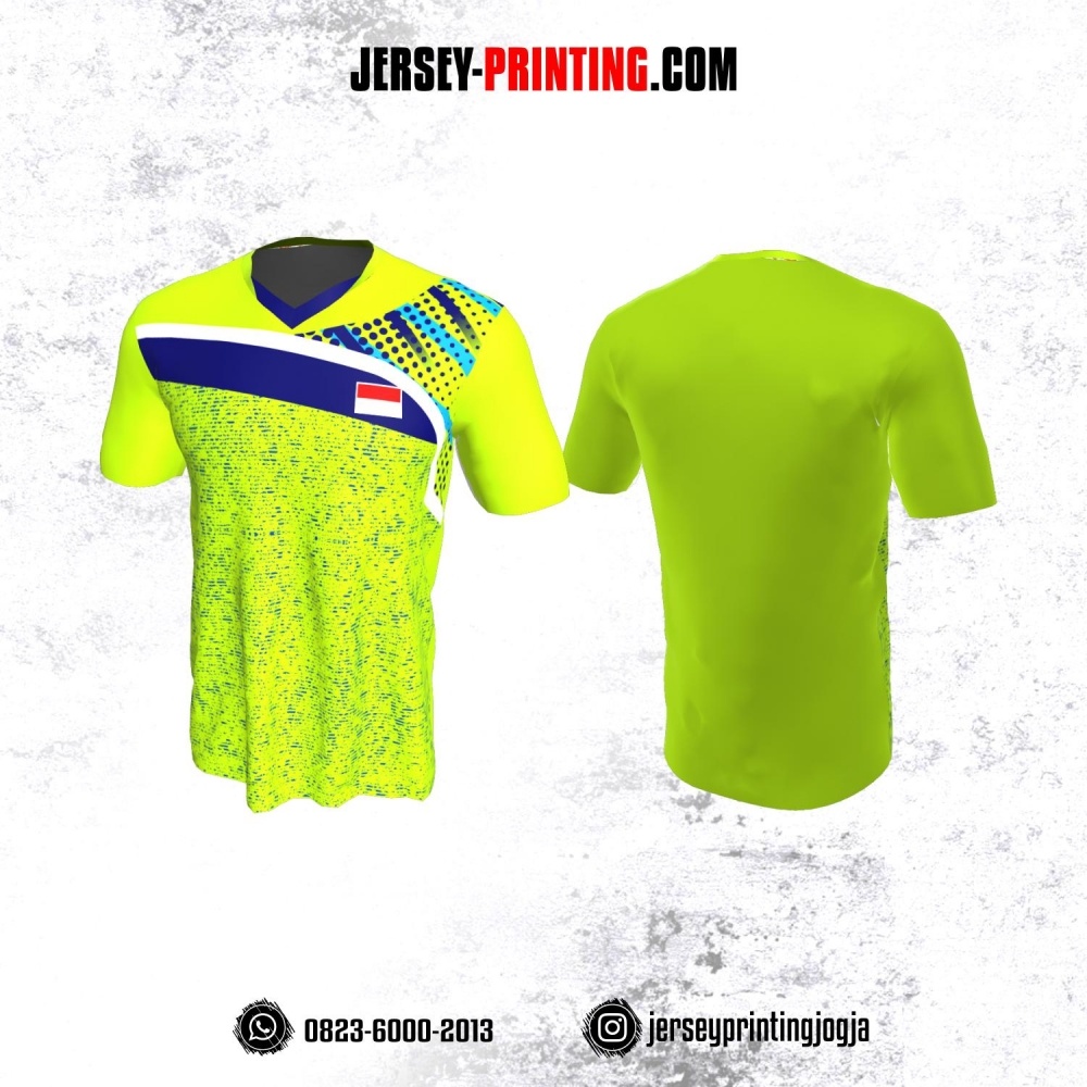 Jersey Badminton Hijau Citroen Biru Putih Motif Bercak