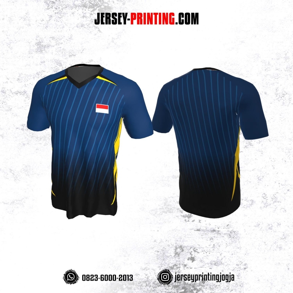 Jersey Badminton Dongker Hitam Kuning Motif Garis