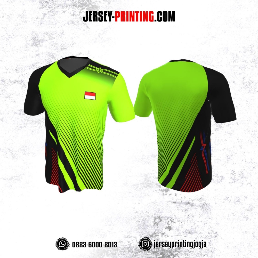 Jersey Badminton Hijau Hitam Merah Motif Strip Diagonal