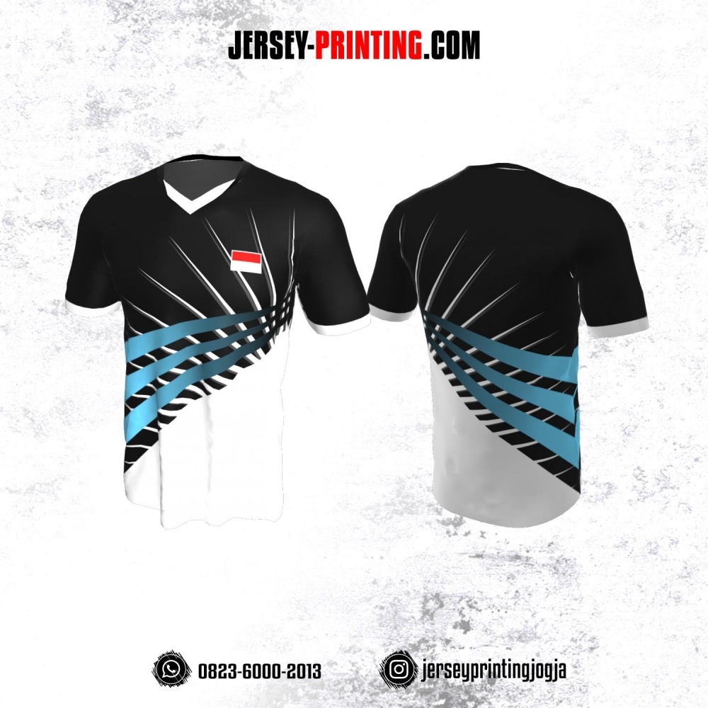 Jersey Badminton Hitam Putih Biru Motif Garis