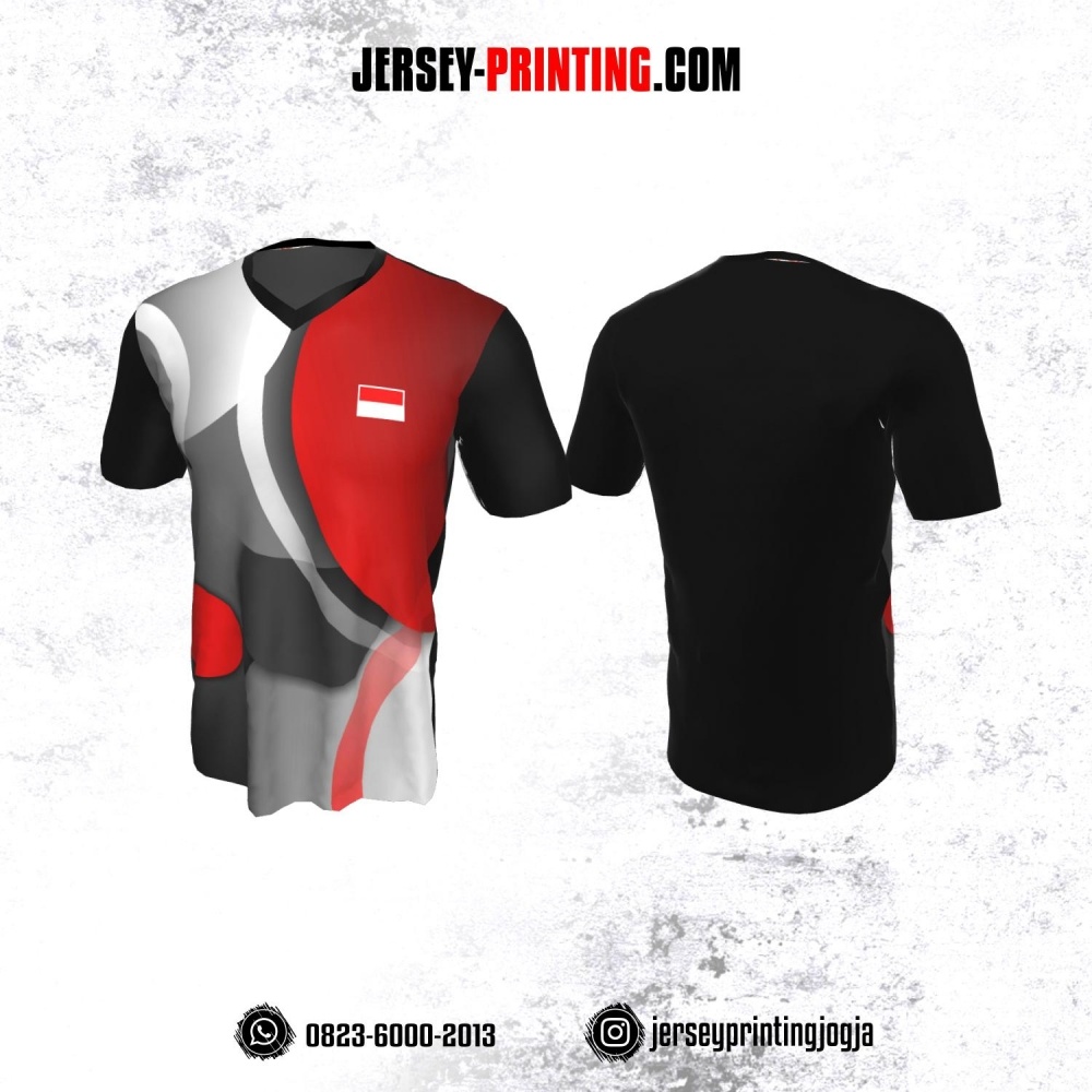Jersey Badminton Hitam Corak Abu-abu Merah Putih