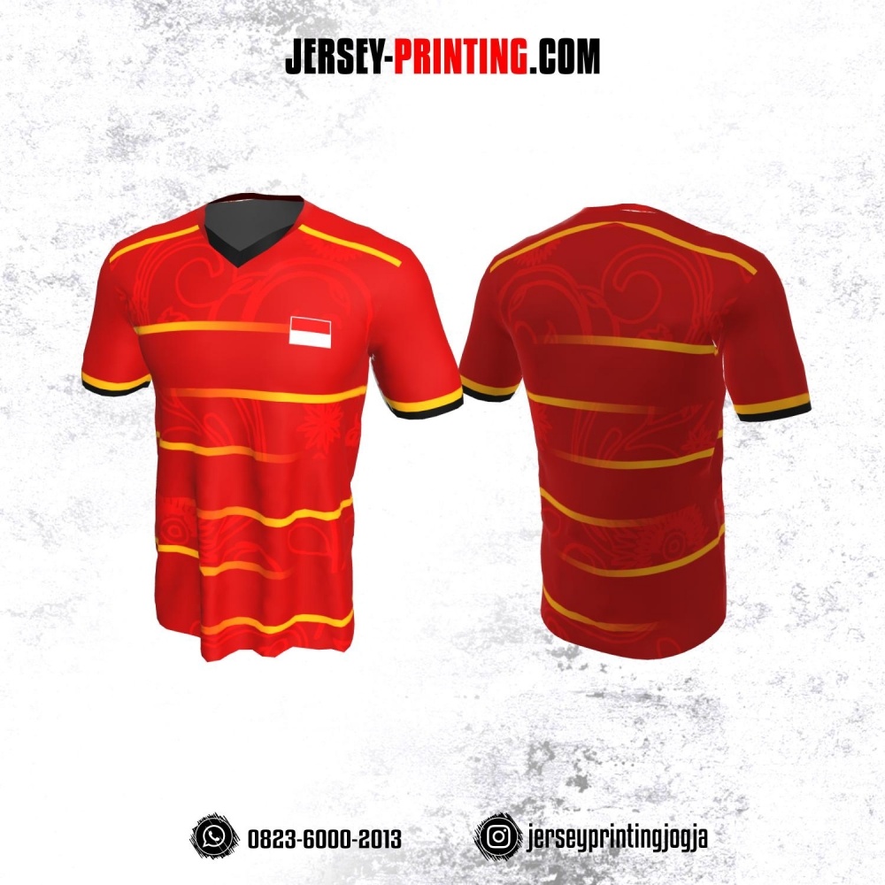 Jersey Badminton Merah Line Kuning Motif Bunga