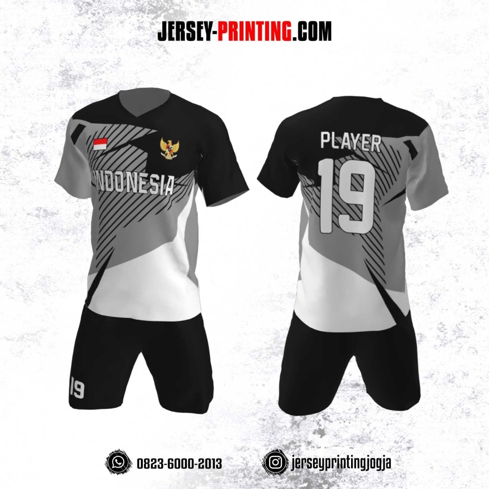 Jersey Futsal Motif Garis Geometris Abu-Abu Putih
