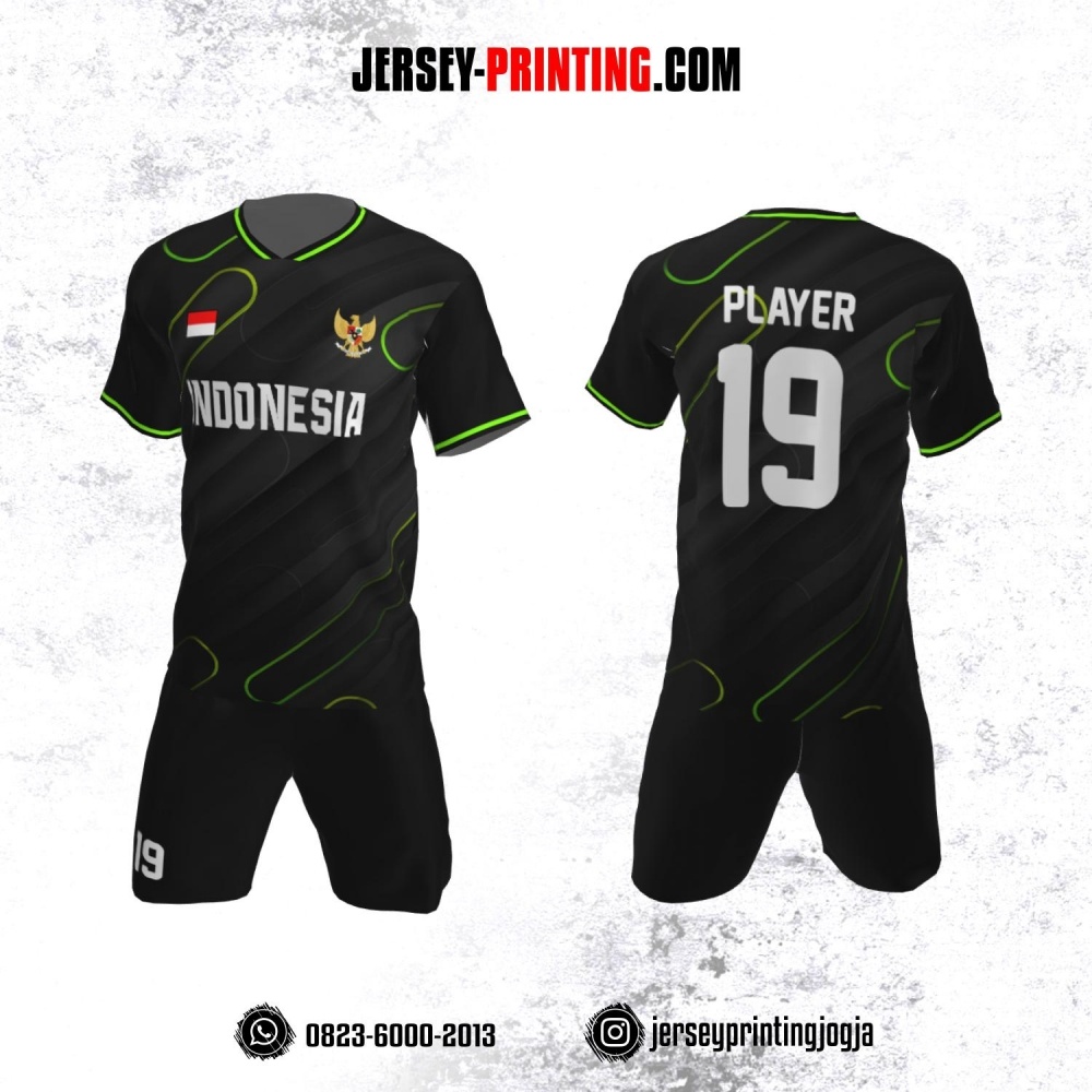 Jersey Futsal Strip Hitam Motif Oval Hijau