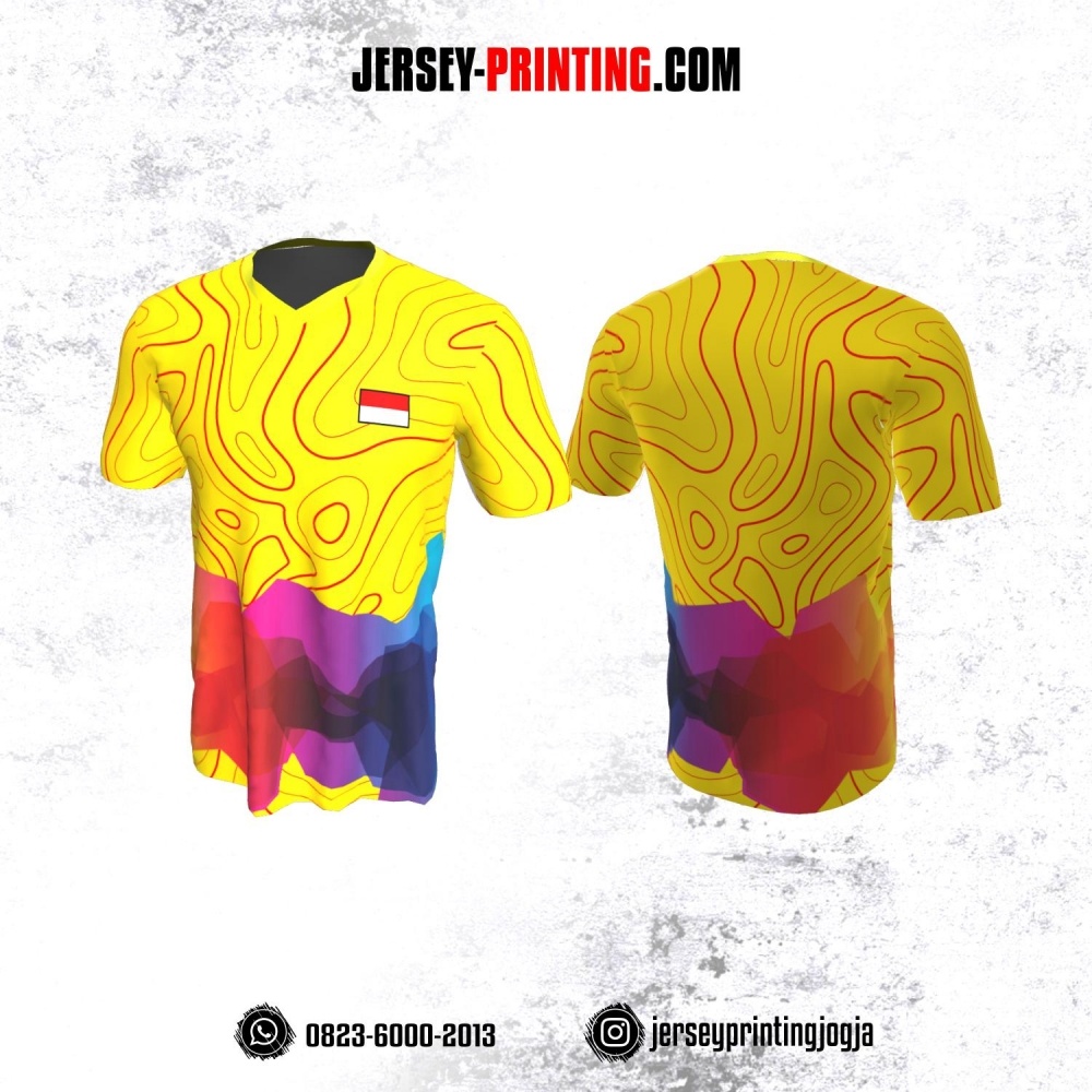 Jersey Badminton Kuning Ungu Motif Garis Topografi Merah