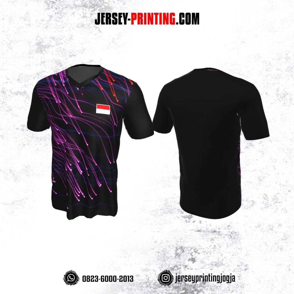 Jersey Badminton Hitam Motif Line Ungu Merah