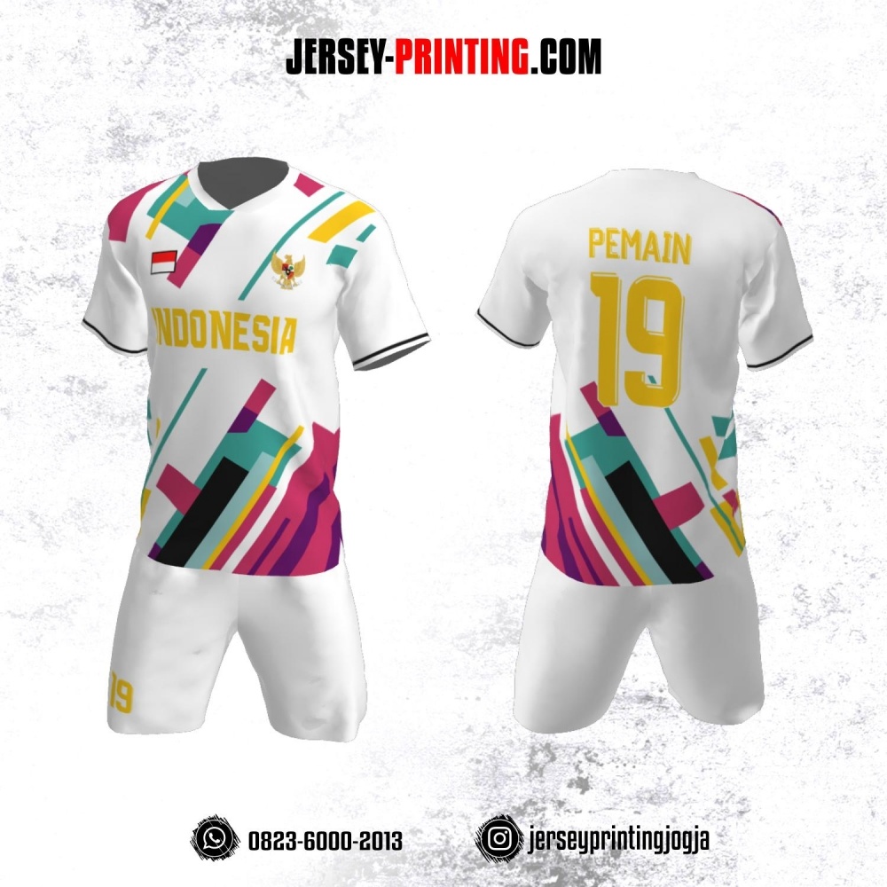 Jersey Futsal Putih Motif Geometris Abstrak Pink Tosca Kuning