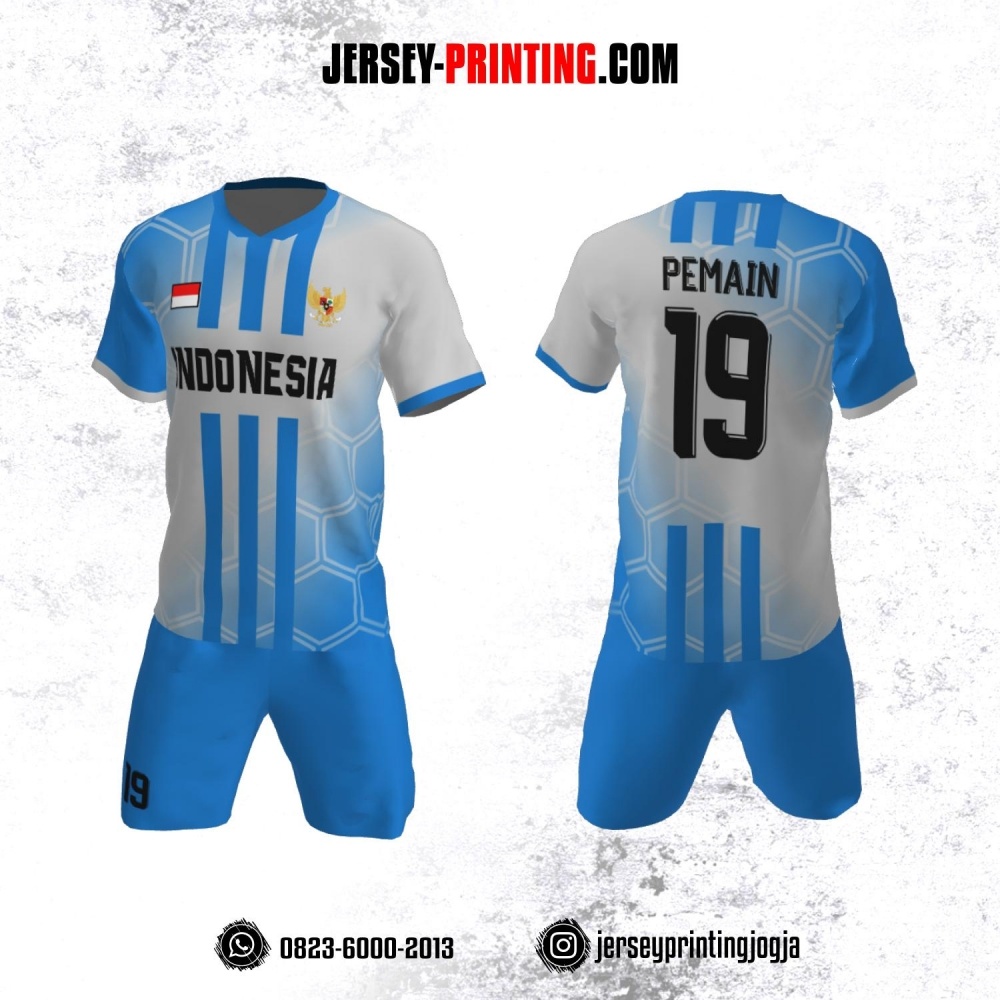 Jersey Futsal Biru Putih Motif Line dan Hexagon