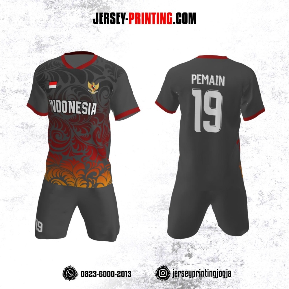 Jersey Futsal Abu-abu Merah Orange Motif Batik