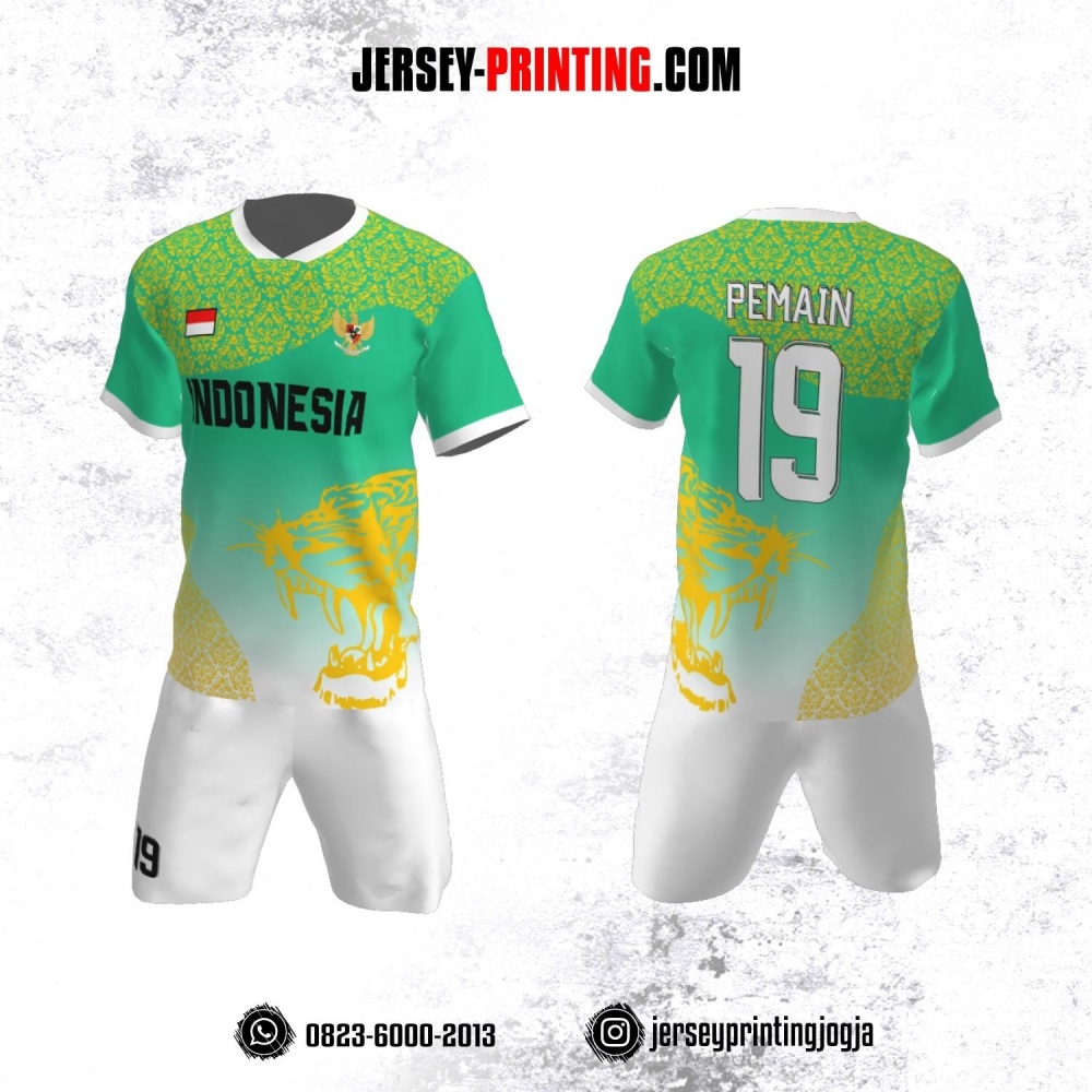 Jersey Futsal Hijau Putih Motif Batik Kuning