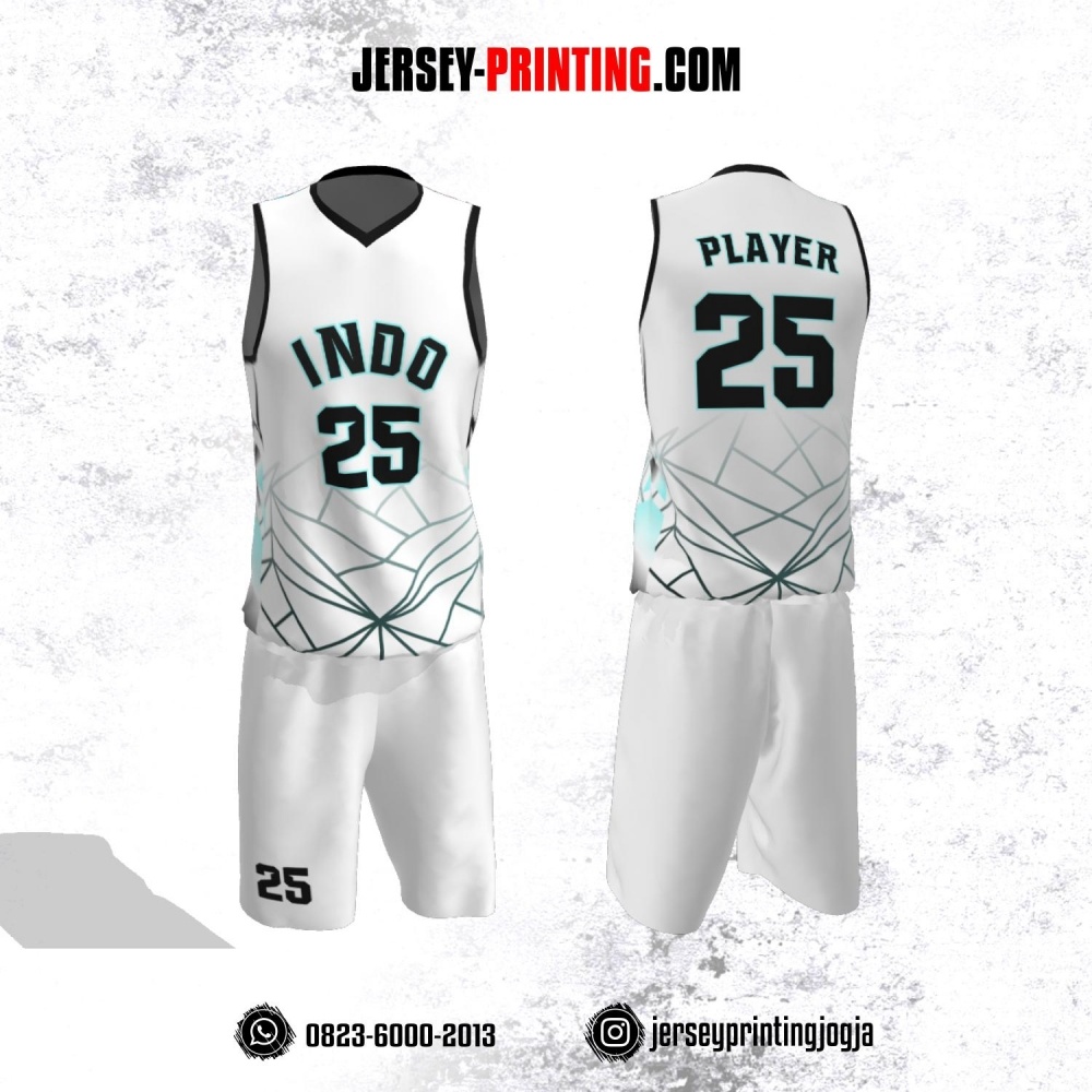 Jersey Basket Putih Motif Garis Abstrak Hitam