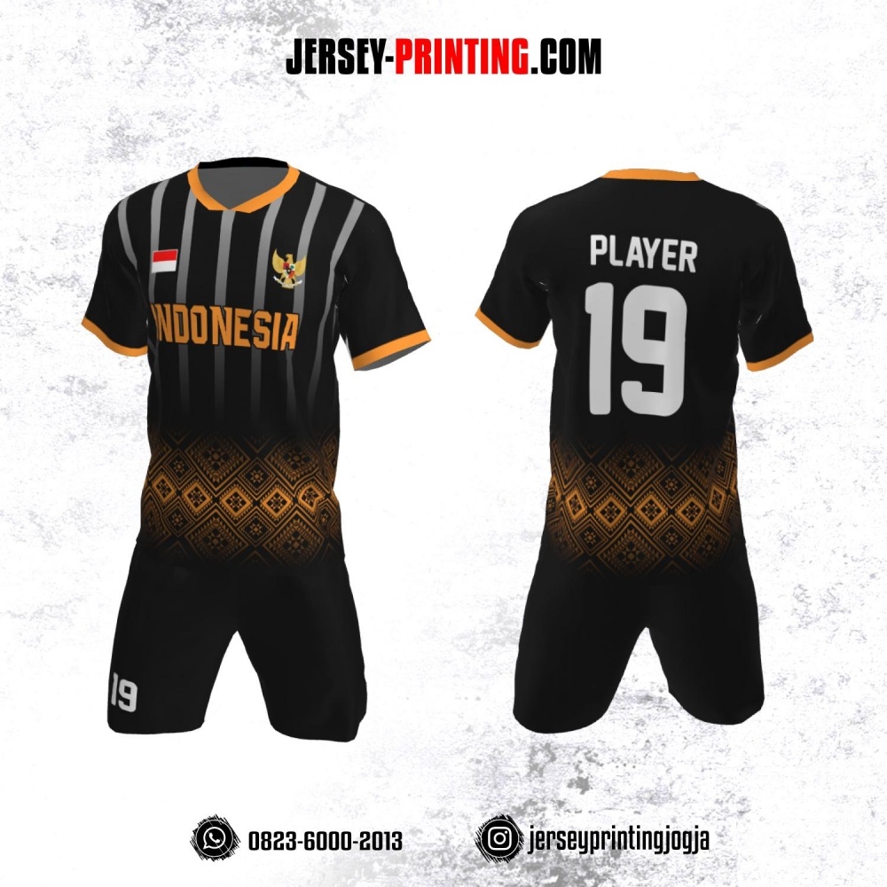 Jersey Futsal Hitam Motif Batik Coklat dan Strip Abu-abu