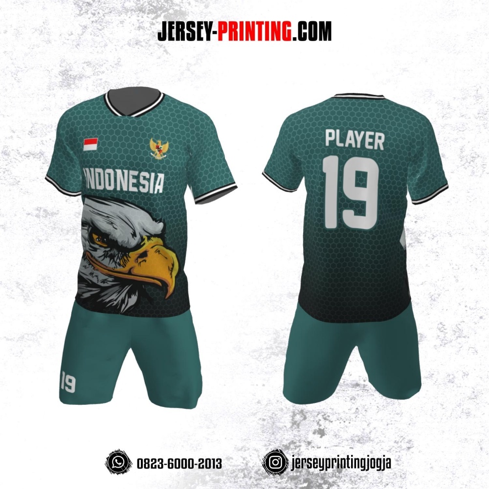 Jersey Futsal Teal Hitam Putih Motif Honeycomb dan Burung Elang