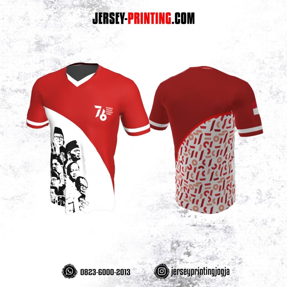 Jersey HUT RI 76 Kemerdekaan Indonesia 17 Agustus Merah Putih Hitam Motif Pahlawan Nasional