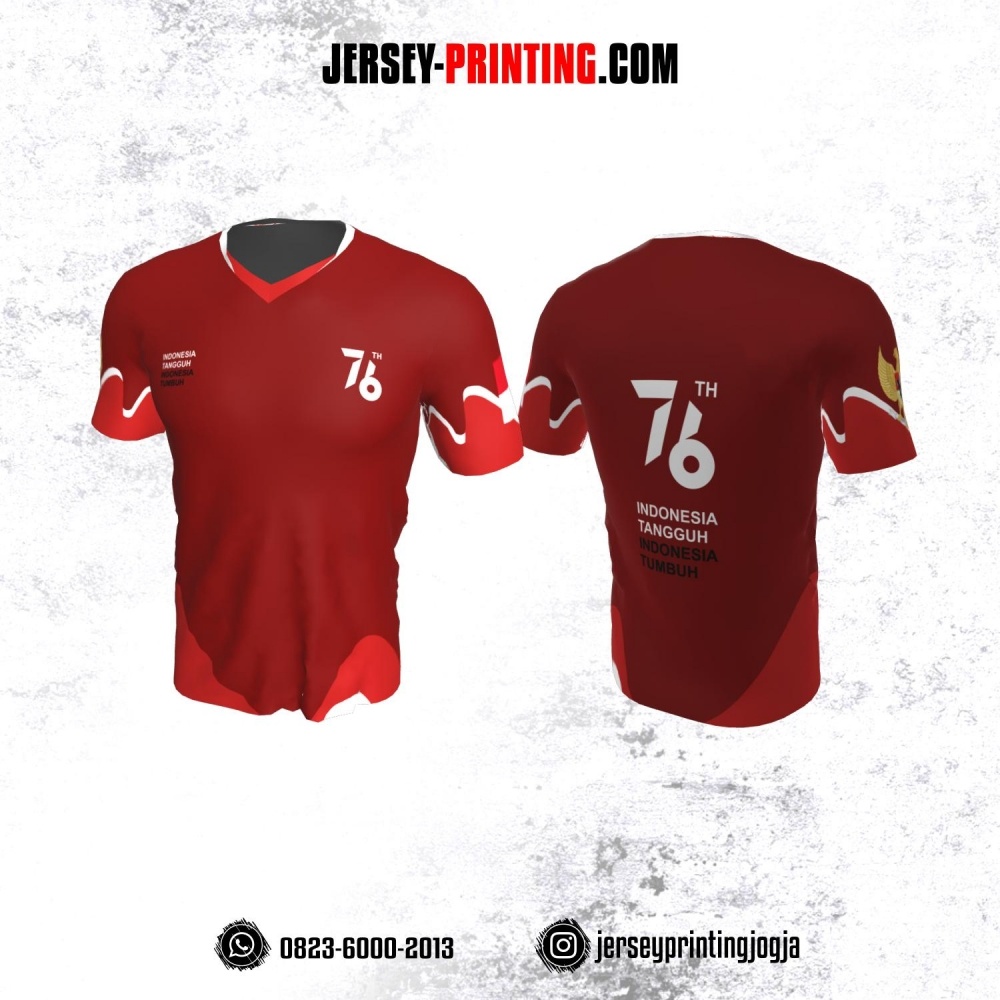 Jersey HUT RI 76 Kemerdekaan Indonesia 17 Agustus Merah Maroon Line Putih