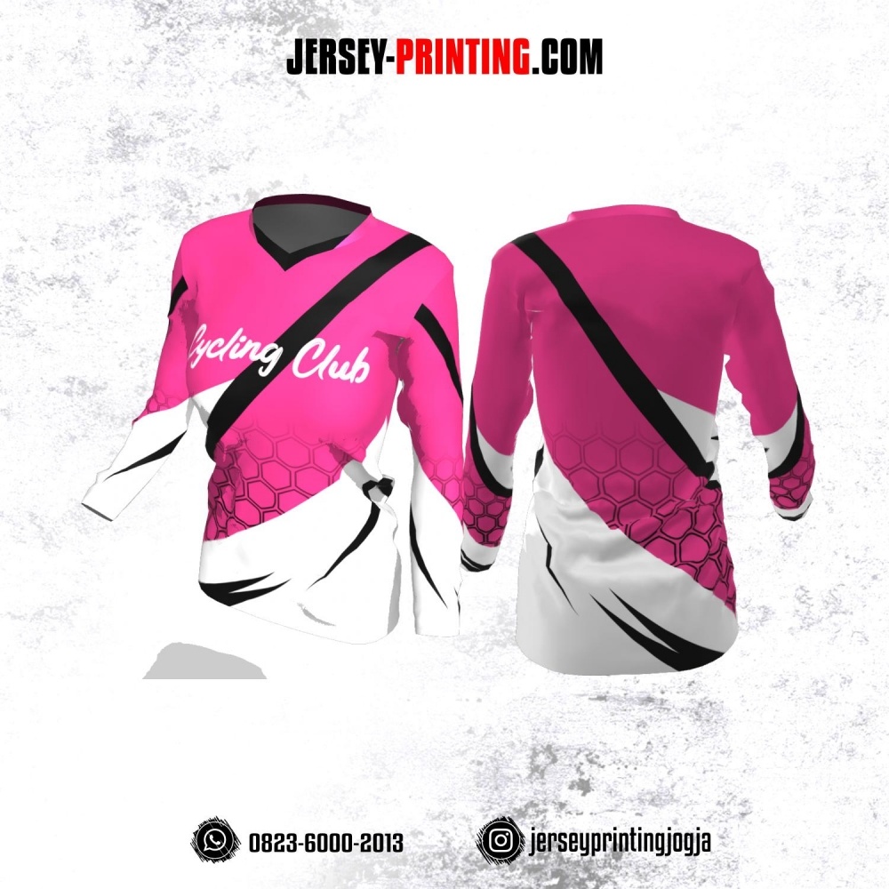 Jersey Cewek Gowes Sepeda Pink Putih Hitam Motif Honeycomb Lengan Panjang