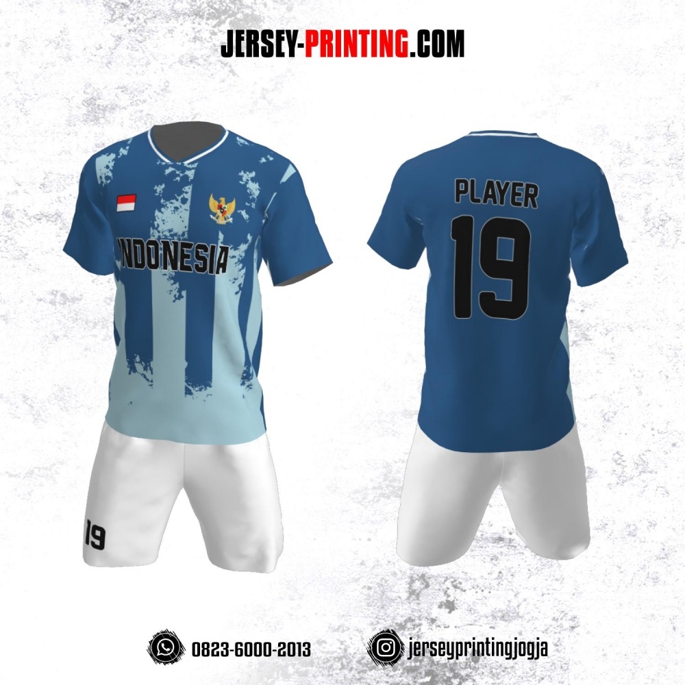Jersey Futsal Motif Bercak Biru Muda