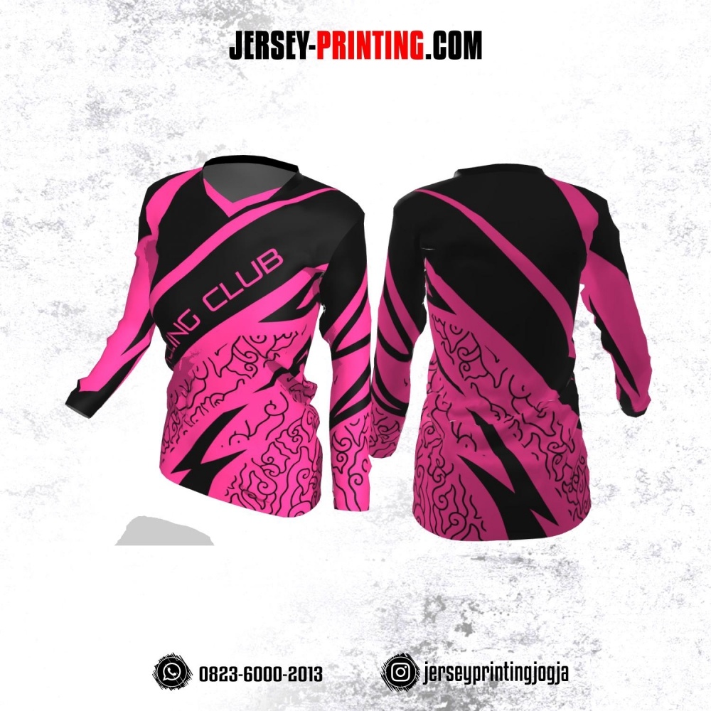 Jersey Cewek Gowes Sepeda Pink Hitam Motif Batik Lengan Panjang