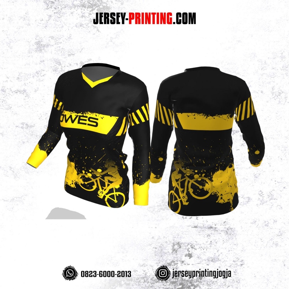Jersey Cewek Gowes Sepeda Hitam Motif Splash Tinta Kuning Lengan Panjang
