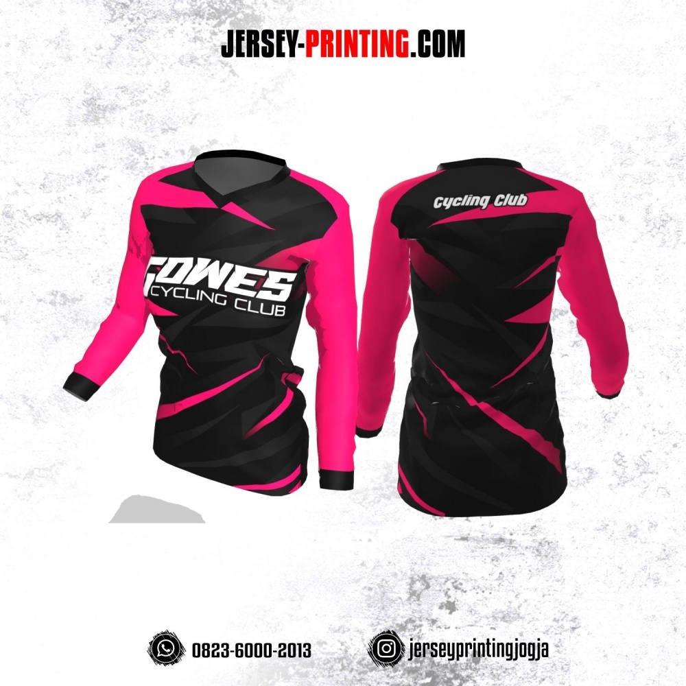 Jersey Cewek Gowes Sepeda Hitam Corak Magenta Lengan Panjang