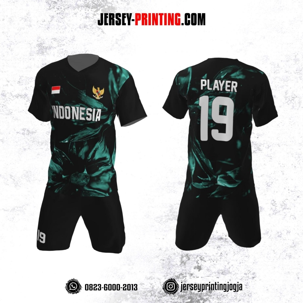 Jersey Futsal Hitam Motif Kristal Hijau Abadi