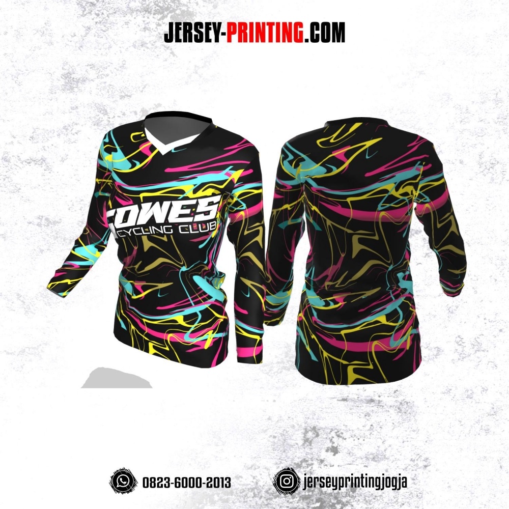 Jersey Cewek Gowes Sepeda Hitam Motif Abstrak Kuning Pink Biru Lengan Panjang