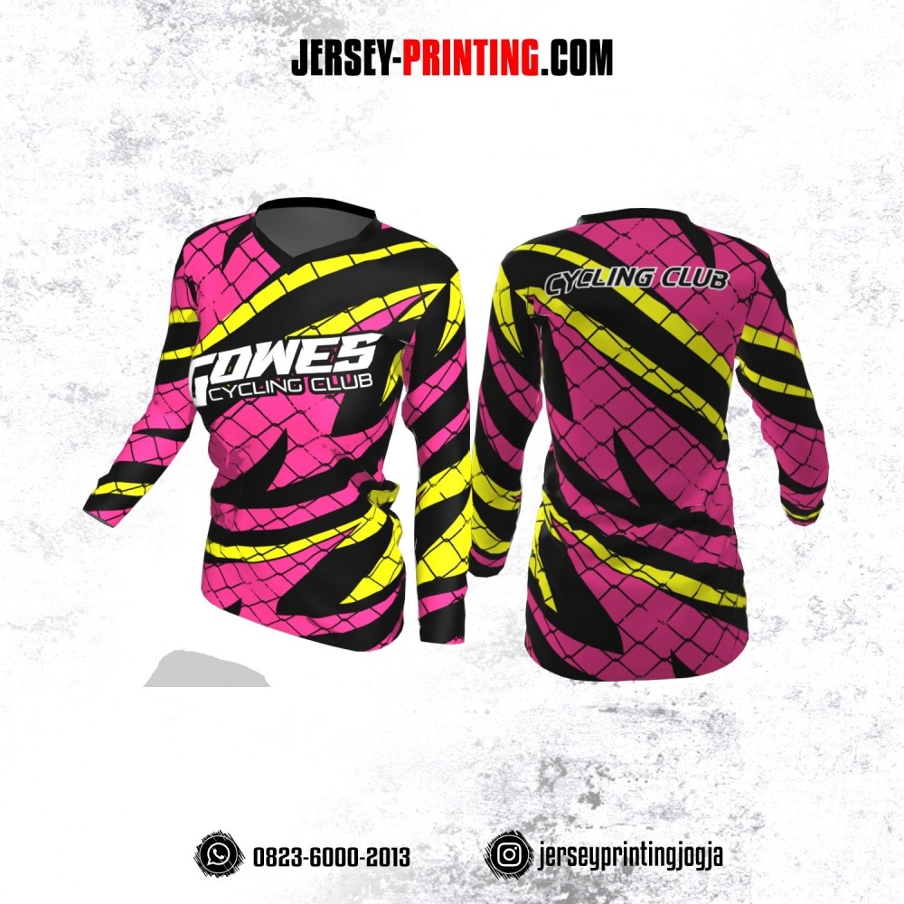 Jersey Cewek Gowes Sepeda Pink Hitam Kuning Motif Jaring Lengan Panjang
