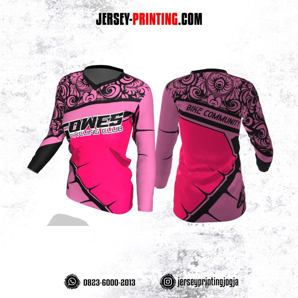 Jersey Cewek Gowes Sepeda Pink Magenta Motif Batik Hitam Lengan Panjang