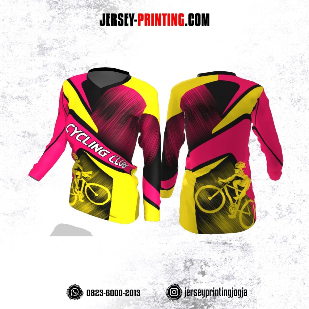 Jersey Cewek Gowes Sepeda Pink Kuning Brush Hitam Lengan Panjang