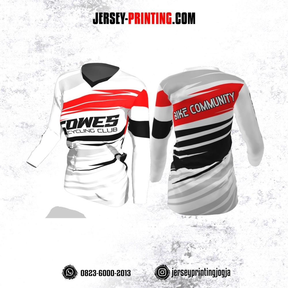 Jersey Cewek Gowes Sepeda Putih Motif Kilat Hitam Merah Lengan Panjang
