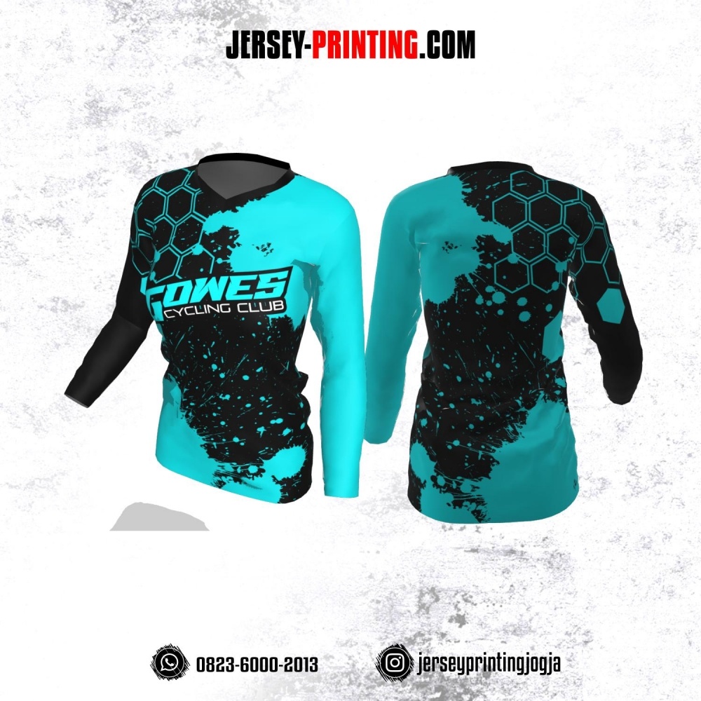 Jersey Cewek Gowes Sepeda Hitam Motif Bercak dan Hexagon Tosca Lengan Panjang