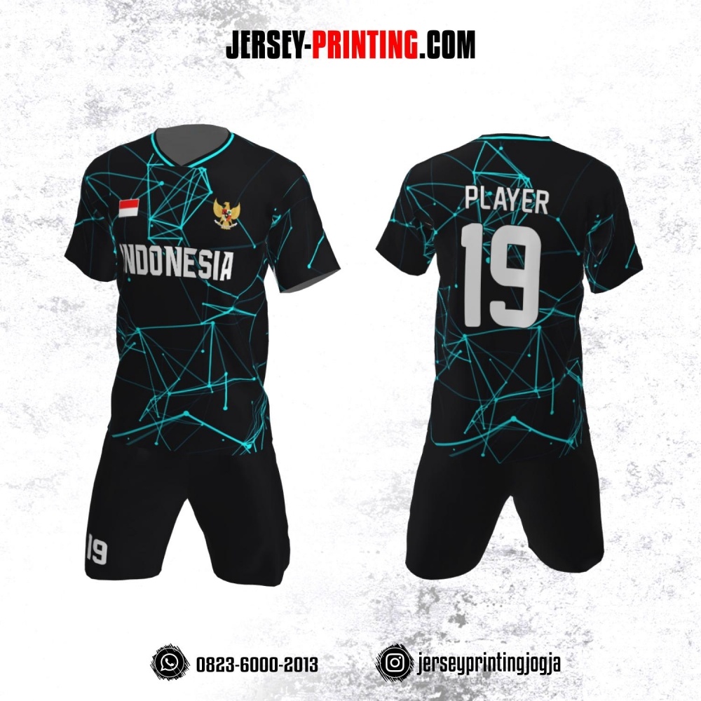Jersey Futsal Motif Line Geometris Hitam Tosca