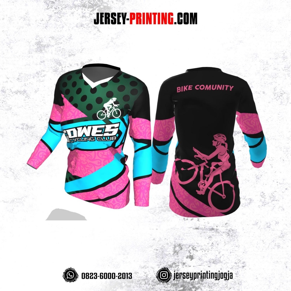 Jersey Cewek Gowes Sepeda Pink Hitam Biru Hijau Motif Batik Lengan Panjang
