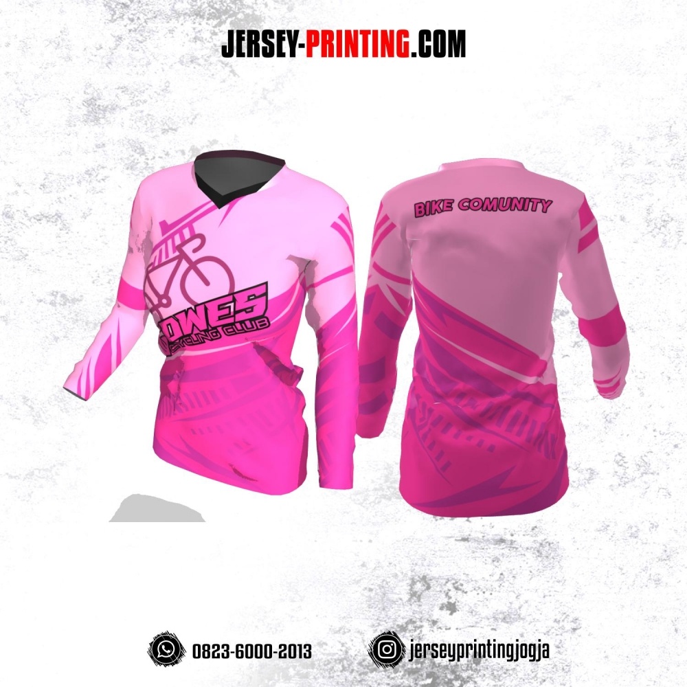Jersey Cewek Gowes Sepeda Pink Kombinasi Lengan Panjang
